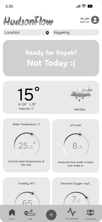 Users found existing platforms either too technical to navigate or too shallow to be useful, exposing a major gap in how water quality data is communicated. This revealed a strong need for a trustworthy, easy-to-use platform delivering real-time, reliable insights for everyday river users.
