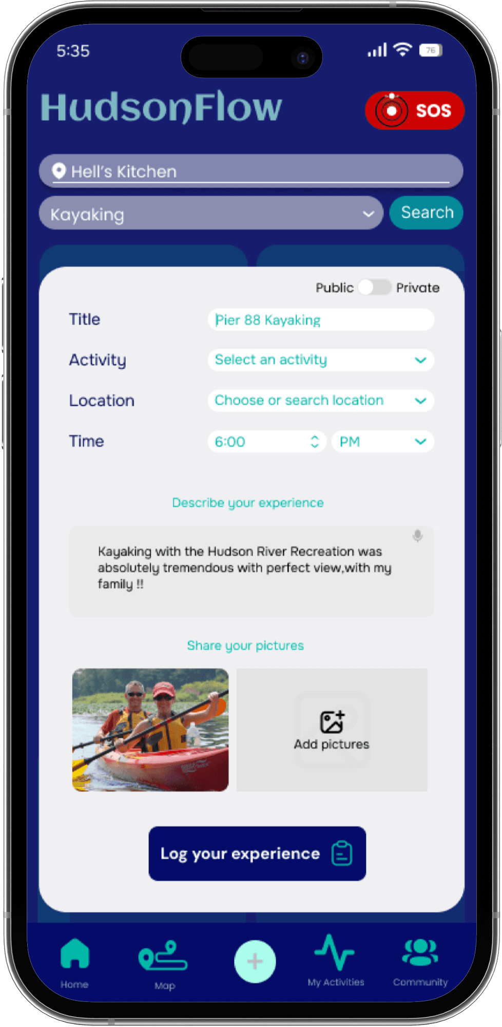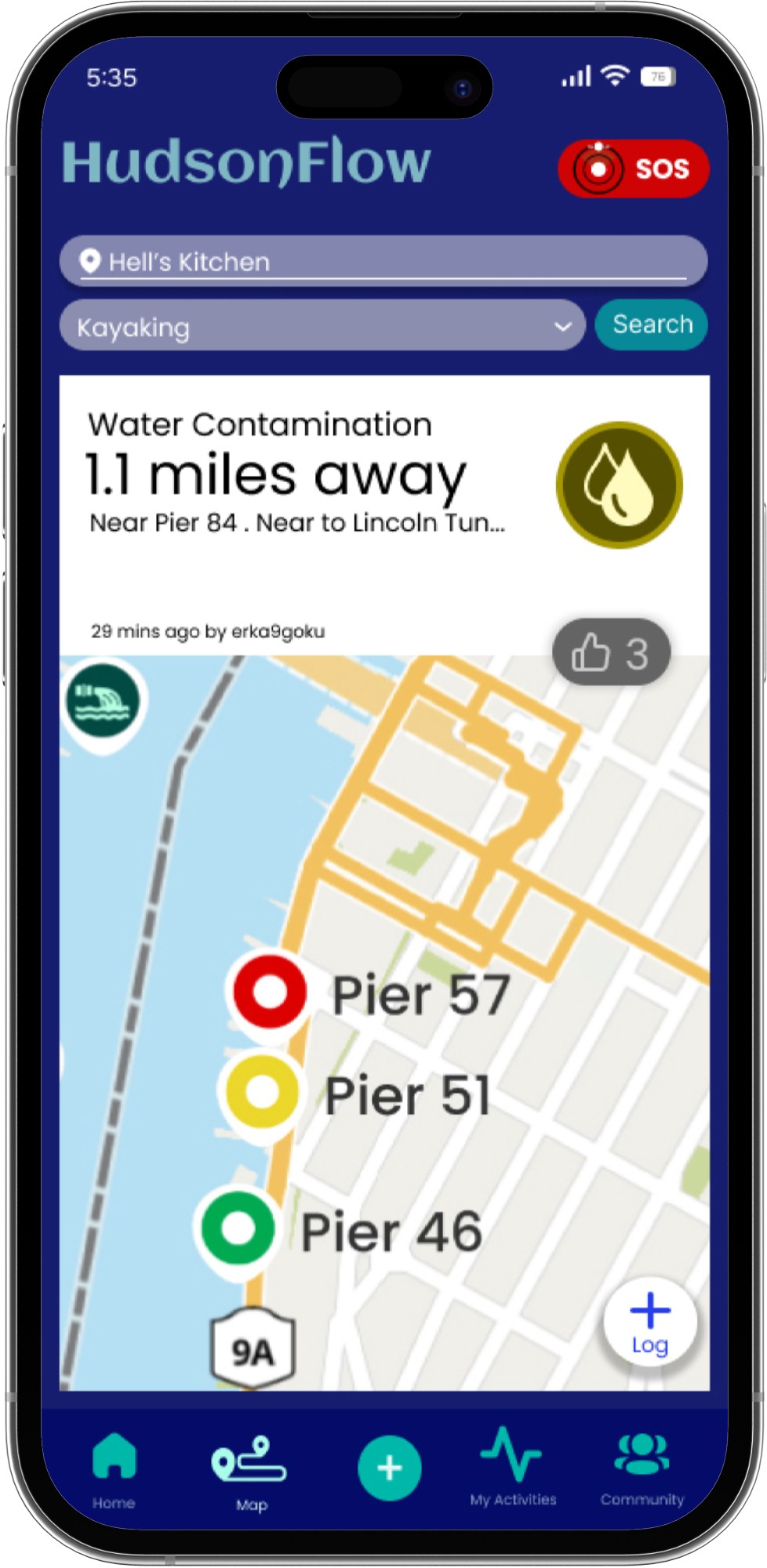 HudsonFlow is a water quality platform for Hudson River users, offering real-time updates, community insights, and intuitive tools for safe and informed recreation. This project highlights my user-centered design approach and focus on creating seamless, functional experiences.