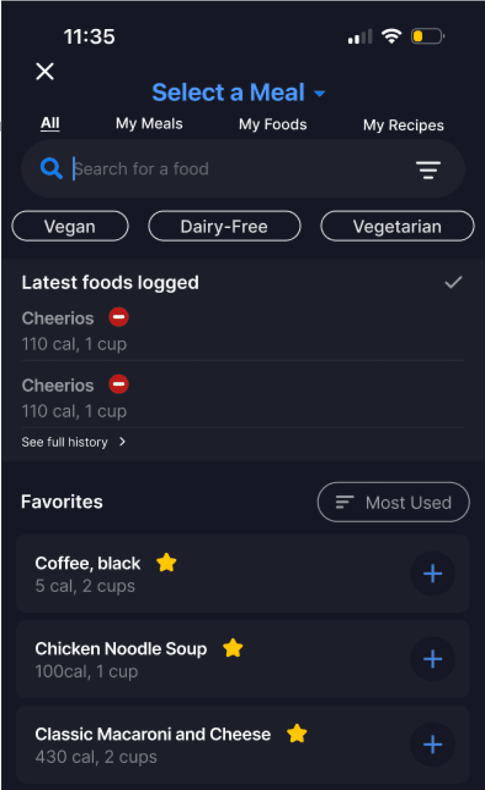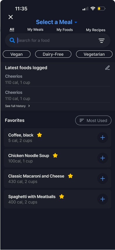 Frequent users of MyFitnessPal often log the same meals daily, making the process repetitive. Our Favorites feature now lets users save their most commonly logged meals for quick access.