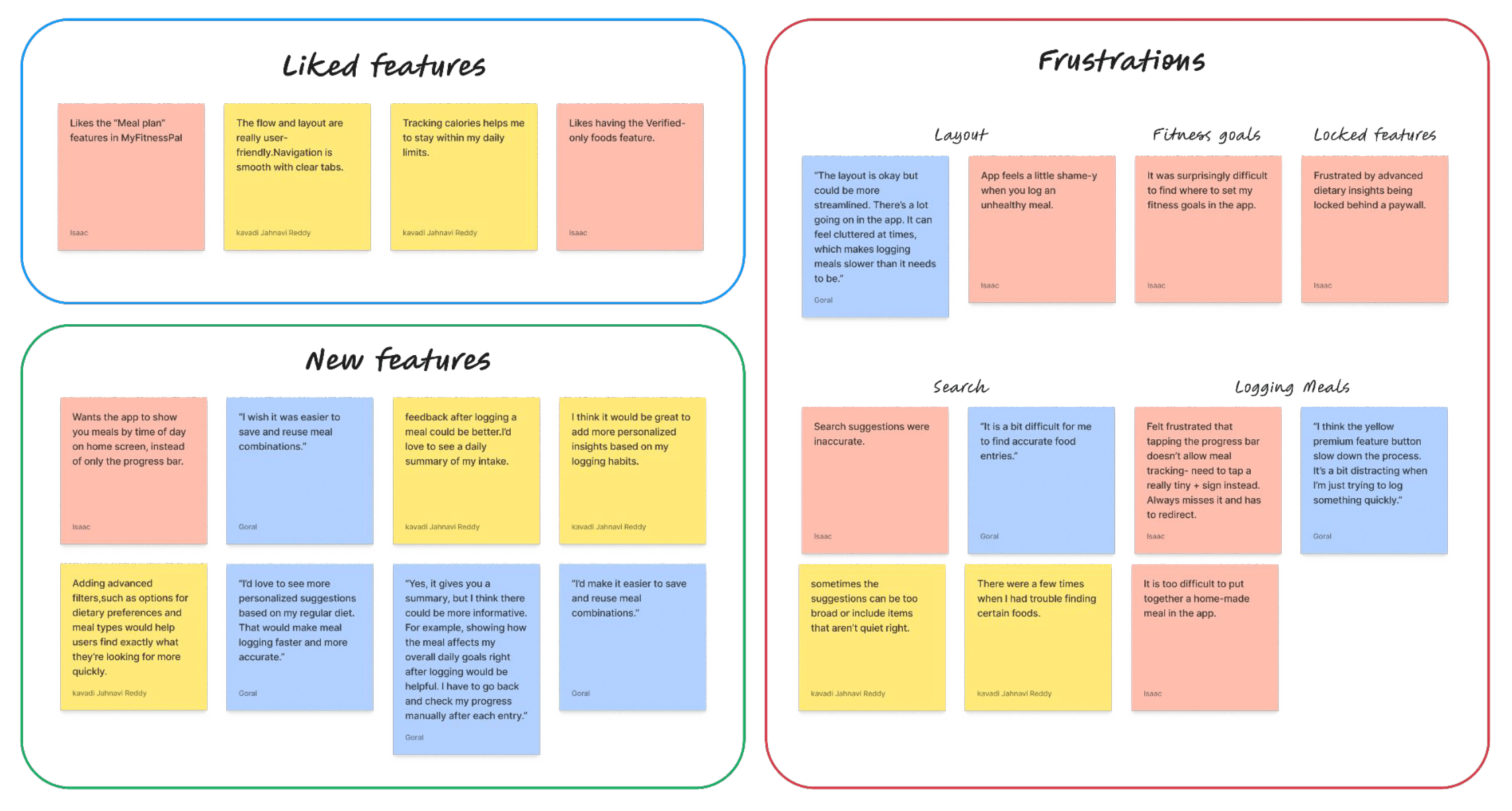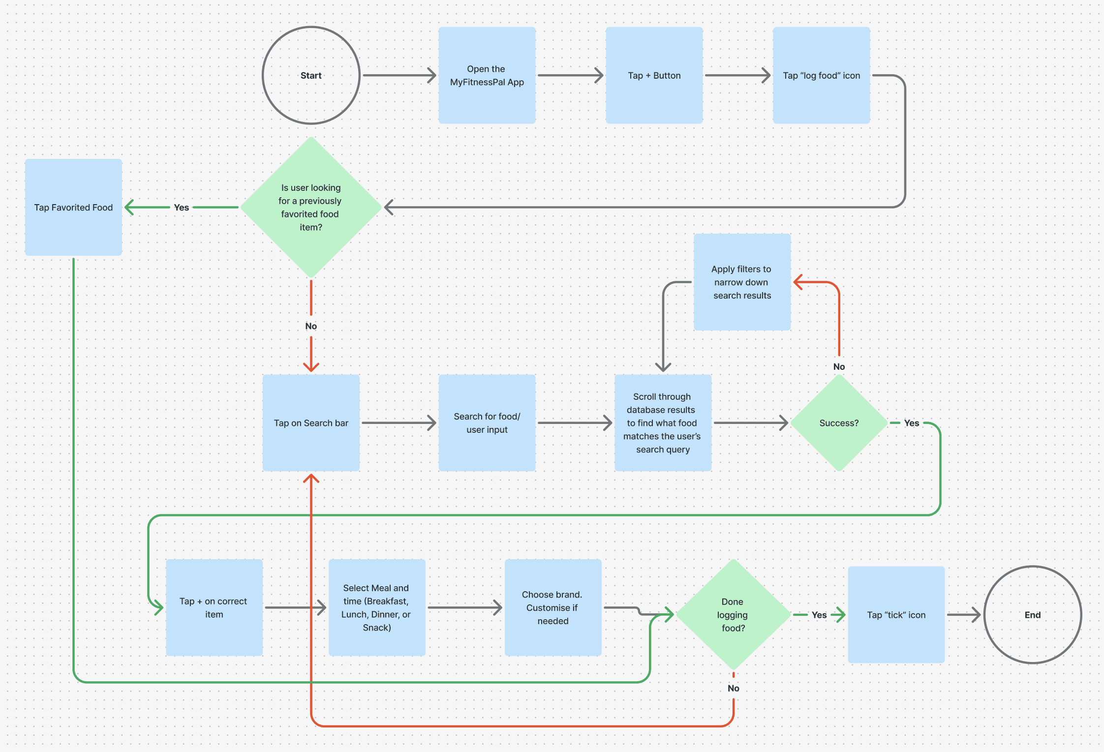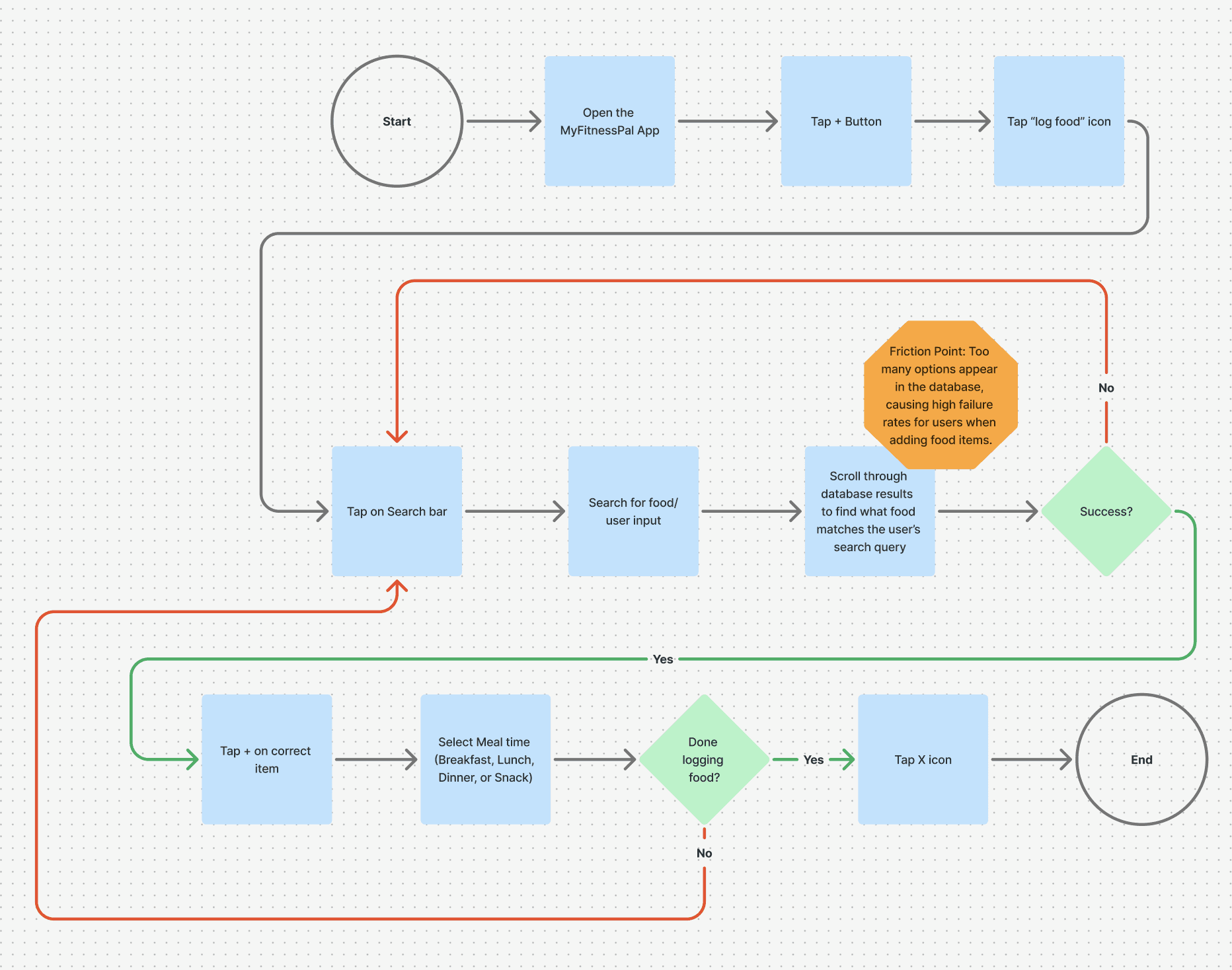 Our team saw an opportunity to transform this experience. Through research, design, and iterative testing, we embarked on a mission to redesign MyFitnessPal’s meal-logging process. By addressing user pain points and streamlining interactions, we aimed to create a tool that empowers users to focus on their health goals—not on navigating a complex app. Here’s how we did it.