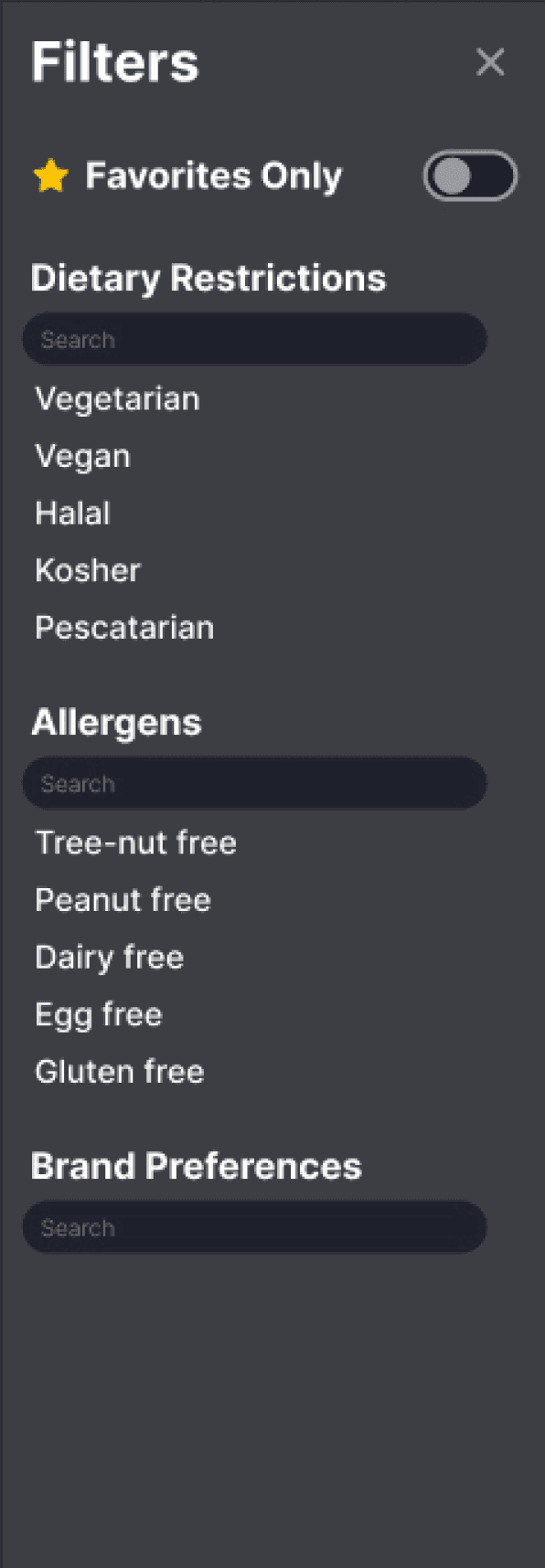 Users often struggled with irrelevant and overwhelming food suggestions. To solve this, we introduced Dietary Filters—a feature that allows users to refine search results based on preferences like vegetarian, vegan, or low-carb options.
