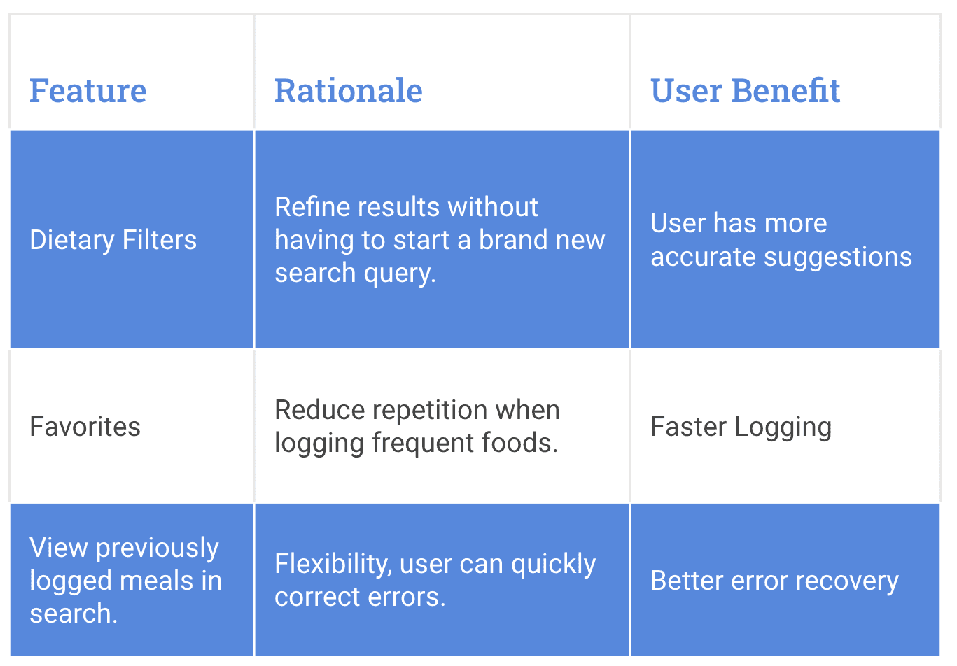 Users liked the flexibility of using filters and the option of editing their previously added meals.