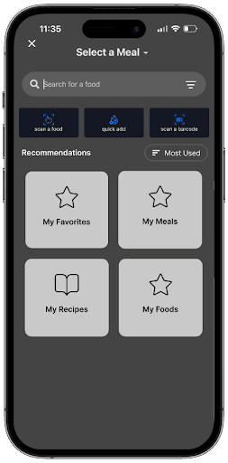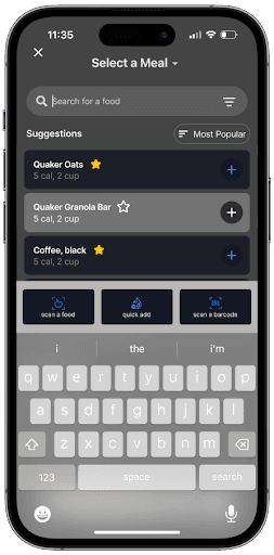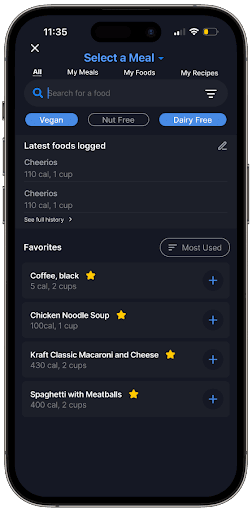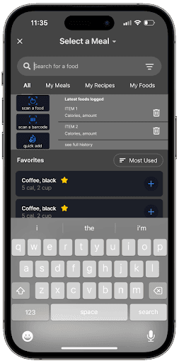 This feature eliminates the need for redundant searches, allowing users to find and log meals they’ve already added with just one tap.