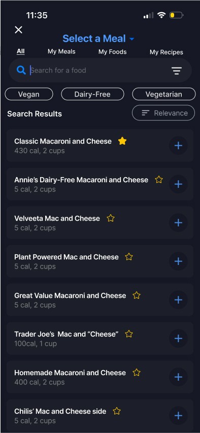 By personalizing search results, users can quickly find meals that match their dietary needs without sifting through unnecessary options. This makes the meal-logging process not just faster but also more relevant.